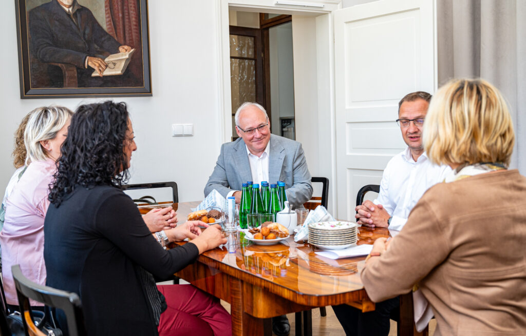 Podczas wizyty w powicie kaliskim przedstawicielki samorządu Piedimonte San Germano spotkały się zprorektor ds. studenckich, kształcenia i współpracy z zagranicą dr Tatianą Manasterską, prof. Uniwersytetu Kaliskiego oraz kanclerzem Grzegorzem Szymańskim, by z upoważnienia uczelni w Cassino podjąć wstępne rozmowy w sprawie nawiązania współpracy.
