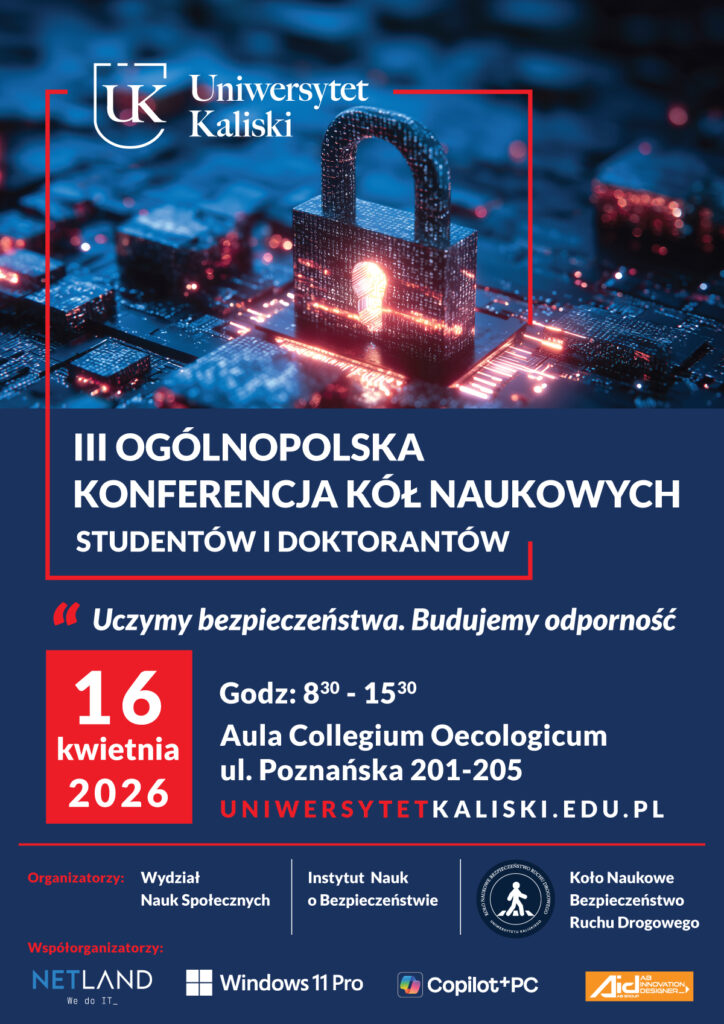 Ogólnopolska Konferencja Naukowa dla studentów i doktorantów kół naukowych odbędzie się w dniu 16.04.2026 r. w Kaliszu, w murach Uniwersytetu Kaliskiego im. Prezydenta Stanisława Wojciechowskiego, w Auli Collegium Oecologicum przy Poznańskiej 201-205.